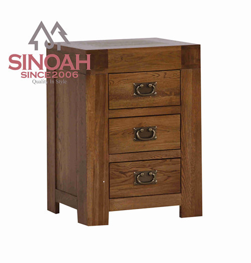 Solid Oak Rustic 3 Drawer Bedside Chest