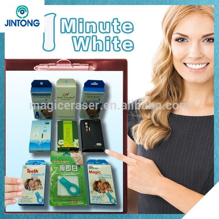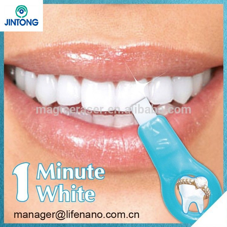 Magic teeth cleaning kit is an innovative product that uses the new nano technology. Each nano particle in the interior nano capilary tube is much smaller than ten thousandth of a hair strand, and works fast to absorb the stains from your tooth surface. It is the most effective against stubborn stains and plaque caused by smoking , coffee,iced tea and more. Removes stains from tooth surface based on Physical Absorption Process! Doesn't hurt the enamel! Recover you snow-white teeth, promote your confidence and show your charm!