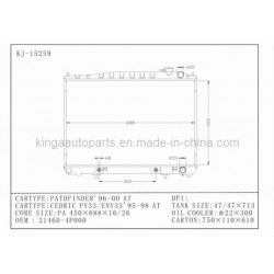 Auto Radiator for Pajero V43'92-96 MT (KJ-14124),Auto Radiator for Pajero V73'07 AT (KJ-14091A),Auto Radiator for Honda Odyssey'09 Mt (KJ-17140),Auto Radiator for Pathfinder'96-00 AT (KJ-15259),China OEM Radiator for Petrol' 93- Y60 at,Auto Radiator for Peugeot 406'99- MT (KJ-50017),Top Brand Auto Radiator for Peugeot 307 Mt,Auto Radiator for Peugeot 206-1 MT (KJ-50001)