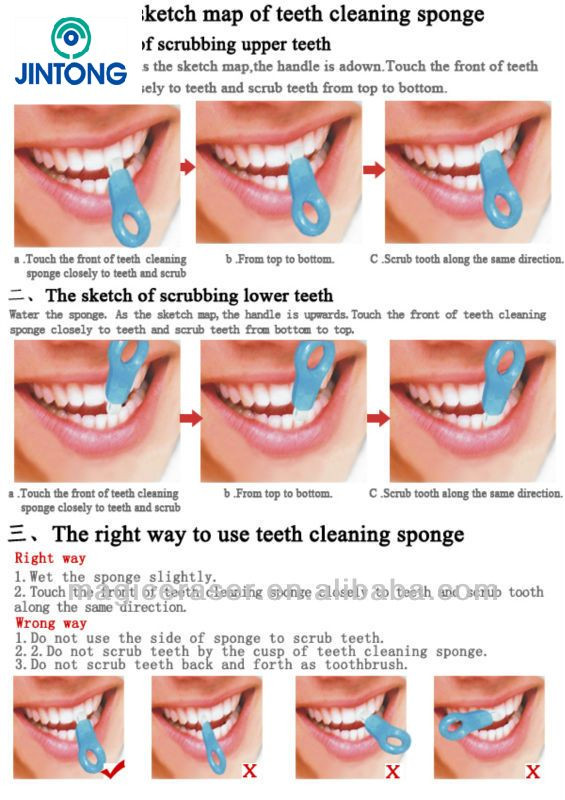 2, Gently brush the stains by the front side of sponge, the teeth stains and plaque will be absorbed instantly on
